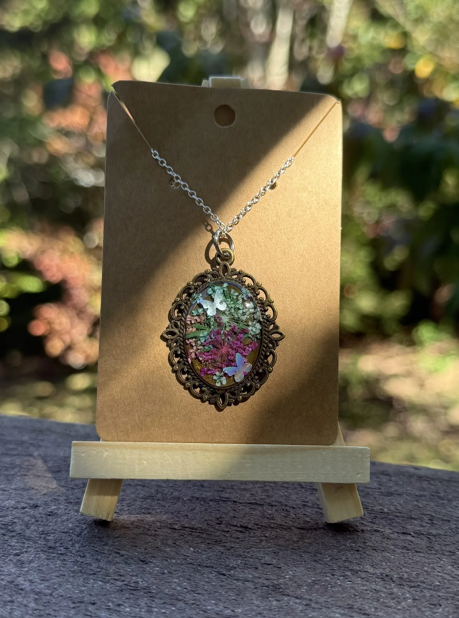 Each pendant captures the delicate shape of a mushroom, placed inside a vintage-style frame and sealed in place. Perfect for those who want a sprinkle of nature’s enchantment with a dash of sparkle, this necklace turns “morning walk in the woods” vibes into a stylish statement. Whether layered with florals or worn solo for a subtle, mystical pop, it’s a quirky little talisman that reminds you to stay curious and charmingly unexpected. Who knew fungi could be so fabulous?